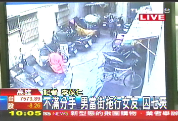 中新網6月24日電 據臺灣TVBS報道,高雄有一名男子,因為不滿同居女友打算帶著孩子要求分手,竟然持棍棒追打、拖行女友,過程全都被監視器錄下。