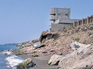 他無奈表示,起碼還有1米沙灘,有時根本看不到,往年沙灘常舉辦沙雕比賽,現(xiàn)在卻連旁邊自行車道也不見,遠處舊海巡營區(qū)更隨時會倒下,岌岌可危,從前回填垃圾與石渣也因海水侵蝕裸露。