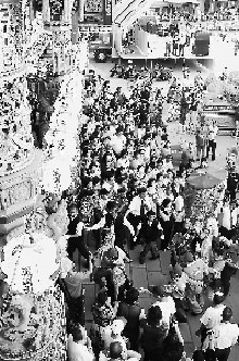 1至2日,廈門海滄青礁慈濟宮保生大帝神像在臺南市和臺南縣的三個宮廟進行了繞境巡游(右圖),并在其中兩個宮廟駐蹕。數以萬計的島內南部信眾簇擁恭迎,讓青礁慈濟宮交流團成員深深體會到了信眾的熱情,以及閩臺宗教文化交流的熱潮。