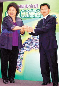 中新網12月8日電 據臺灣《中國時報》報道,為爭取下屆大高雄市長提名,同為民進黨籍的高雄市長陳菊、高雄縣長楊秋興等雙方陣營人馬各自深入敵營,沖鋒陷陣。熟悉政情的人士分析,以目前的態勢來看,陳菊“黑牛大影”,聲勢較壯大,楊秋興則“鴨子劃水”,沉穩向前。