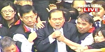 藍綠雙方氣氛火爆,你推我擠,還有“立委”爬上主席臺,意圖打斷會議進行,也有“立委”連忙把同仁架開,避免進一步肢體沖突。