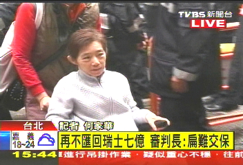 據(jù)臺(tái)灣TVBS報(bào)道,6月11日扁案就要二審宣判,今天再度開庭時(shí)傳喚陳水扁、吳淑珍、陳致中、黃睿靚等4人。法庭上,審判長(zhǎng)當(dāng)著扁家4個(gè)人的面表示,要他們盡速將瑞士4個(gè)賬戶,將近7億新臺(tái)幣的錢匯回臺(tái)灣,否則月底(4月23日)陳水扁即將羈押期滿,屆時(shí)想要交保,重獲自由機(jī)率等于是零。