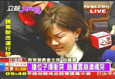而上個星期才因為沖突昏倒送醫的“主席”趙麗云,26日再度看到這樣混亂場面,一度痛哭。“教育委員會主席”趙麗云:“我們要開會,我們要按規則開會,請所有的不管那個黨派的,要對得起人民,我們是拿薪水來開會,不是來打架的。”