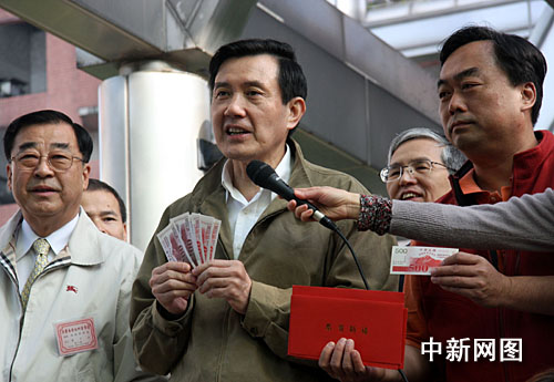 中新網(wǎng)1月18日電 據(jù)臺(tái)灣TVBS報(bào)道,臺(tái)當(dāng)局為了拼經(jīng)濟(jì),在今天(18日)發(fā)放3600元新臺(tái)幣的消費(fèi)券,而身為家中戶長的馬英九,今天上午代表馬家人前往,戶籍地附近的發(fā)放所,領(lǐng)取消費(fèi)券。