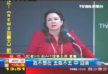 中新網(wǎng)2月13日電 據(jù)臺(tái)灣“今日新聞”報(bào)道,曾經(jīng)被陳水扁贊譽(yù)為“臺(tái)灣守護(hù)天使”的前美國(guó)在臺(tái)協(xié)會(huì)(AIT)理事主席夏馨,一向挺扁到底,但今天(13日)夏馨應(yīng)邀來臺(tái)演講,卻一反常態(tài),不但只字不提政治,當(dāng)媒體一問到“陳水扁”三個(gè)字,夏馨竟然當(dāng)場(chǎng)變臉!
