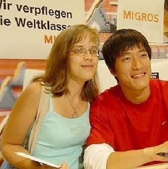 劉翔與外國女翔迷:2005年8月17日,中國的奧運冠軍劉翔和美國的百米飛人格林一起,來到蘇黎世一家名為MIGROSCITY的商場為市民現場簽名。在前面期間,一位劉翔重視的粉絲們有幸坐在身邊,將這最幸福的一刻定格下來。