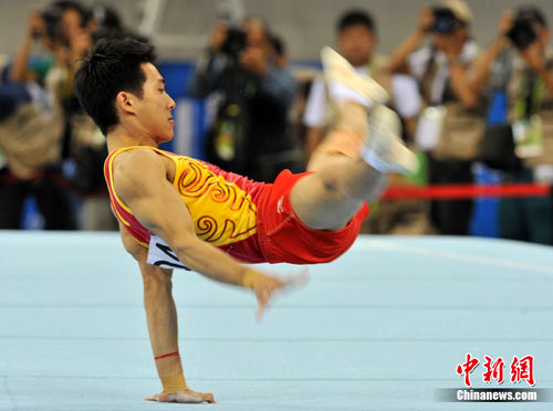 中新網(wǎng)11月15日電 在15日下午剛剛結(jié)束的廣州亞運會體操男子全能決賽中,中國選手滕海濱表現(xiàn)完美,在六個單項比賽中一路領(lǐng)先并最終以91.100分的高分獲得金牌,這也是中國隊在亞運會體操男子個人全能項目上的“九連冠”。