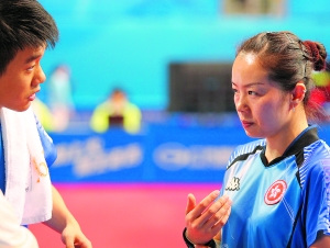 正如唐鵬所說的,他們這第一場比賽進行得并不順利。對手王越古/楊子是新加坡隊一對混雙強檔,剛剛在英聯(lián)邦運動會中獲得過冠軍,而唐鵬由于此前有世界杯等比賽任務(wù),跟帖雅娜組對后也就練了一周,大概四五堂課,所以在比賽中,他們一度局分1∶2落后!皠傞_始我還不好意思說,后來一看落后成那樣,就說了,哈哈!”唐鵬開始耍起了貧嘴。“那你的意思是場上她聽你的嗎?那場外呢?”記者插嘴“八卦”!皥錾衔腋嬖V她(戰(zhàn)術(shù)),她給我創(chuàng)造機會。場下不好說,反正場上我命令她!碧迄i的回答讓記者忍俊不禁。