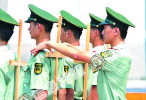 最后,亞組委負責官員把目光投向了武警廣東總隊一支隊。這是一支誕生旗手的部隊。廣東省內各類盛大活動的升旗任務,幾乎都由這支部隊派出。今年9月3日,163名亞運旗手經過嚴格篩選脫穎而出,趕赴集訓營地展開封閉式強化訓練。