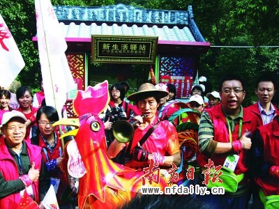 南方日報訊(記者/雷雨實習生/沈潔華通訊員/周丹丹黃靜雯)“雞公欖,有辣有唔辣。”清脆的嗩吶聲、用硬紙片和鐵絲扎成的公雞套籠吸引市民紛紛圍觀拍照。昨日,首批“傳說廣州亞運特使”上崗,在越秀公園宣講嶺南文化。