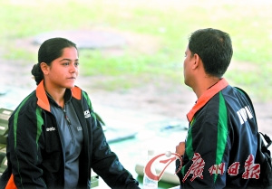 拉賈庫瑪里還有另外一個大問題,那就是無人指導!盀榱四艿玫揭恍┙叹氃诳臻e時間的指點,我經常去離家200多公里的射擊館訓練,每次去都要花兩三個小時!彼f,“請一名教練的費用高昂,我負擔不起。”因此,拉賈庫瑪里非常珍惜每一次的學藝機會,在昨天比賽后隊友的教練路過時,她趕緊請人家給予點撥。