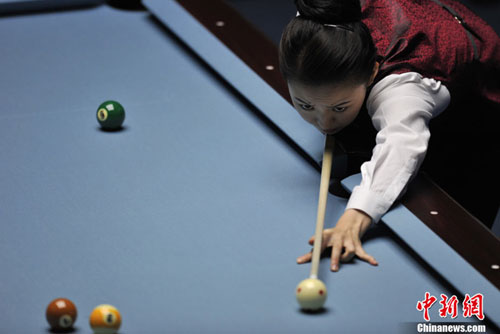 第12局,背水一戰的周婕妤一度做出非常巧妙的防守。但是實力和運氣俱佳的潘曉婷,通過一個高難度的跳球不但化解了危機,擊出的球同時將“黑八”帶入袋口。幸運的潘曉婷沒有浪費這樣的好運氣,她完成一桿清臺,時隔四年終獲亞運金牌。