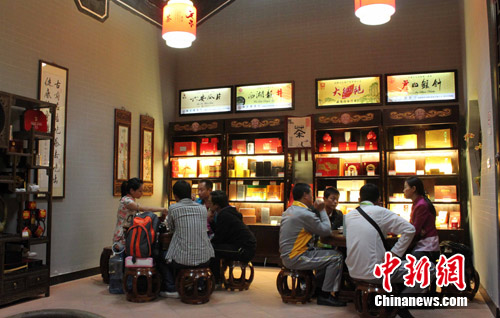 來自福建武夷山有名的“大紅袍”故鄉——天心巖村的黃小姐,一邊為客人泡制名貴的大紅袍,一邊告訴記者:每天來品茶的客人,包括一些志愿者在內,大約有兩三百人之多,雖然不算太熱鬧,但人氣一直持續不斷。其中八成會坐下來品茗。來這里光顧的,有英國、西班牙等西方人士,也有泰國、韓國等亞洲人士。