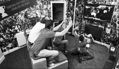 據《貝爾法斯特電信報》報道,一生都支持曼聯的26歲英國小伙子菲爾因故沒有能得到曼聯對熱刺的決賽門票,于是他開始著手把溫布利“搬”回自己位于曼徹斯特的家。菲爾首先將書房的地板鋪上人工草皮,然后在上面放置了一個兩層的小看臺,在看臺上菲爾復制了球場的座椅、靠背,甚至座椅加熱器。為了達到更加逼真的效果,他甚至把房間門也變成了和球場一樣的十字轉門。