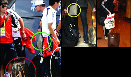 其實,這支國足去年12月首次集中的時候,其行李中大量的“LV”包就引起了外界的極大興趣,當時周海濱和崔鵬的世界名牌裝束還被拍下來發到了網絡上,LV拉桿行李箱,LV背包,還有Prada的腰帶、勞力士、江詩丹頓等名牌手表,甚至有人進行了估算,光國足的裝備就價值百萬元以上。