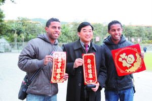 23日晚7點多,經(jīng)過3天舟車勞頓的迪亞戈兄弟悄然抵穗,正式開始中國的淘金之旅。昨天,尚未調(diào)整過時差的迪亞戈兄弟便早早地來到俱樂部訓練場,和剛剛從三水返穗的廣藥大部隊匯合。長相、身高、發(fā)型、笑容幾乎完全一樣的巴西twins甫一亮相,便成為了訓練場上的絕對焦點。正在進行折返跑的廣藥球員齊刷刷地將目光掃向了這對雙胞胎,隨后便是不約而同地驚訝和詫異,“太像了”、“到底哪個才是迪亞戈?”