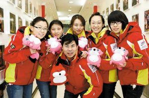 在昨天的網(wǎng)絡(luò)聊天現(xiàn)場(chǎng),這群活潑的姑娘對(duì)著話筒唱出對(duì)隊(duì)長(zhǎng)王冰玉的表白:“胖冰胖冰我愛(ài)你,就像老鼠愛(ài)大米……不對(duì),就像大米愛(ài)老鼠……胖冰是1984年生的,屬老鼠。”王冰玉對(duì)隊(duì)友的熱情弄得有些措手不及,漲紅著臉說(shuō)“我也愛(ài)你們”。