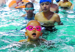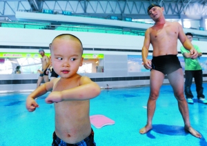 不到一分鐘,小劉暢就游到了泳池的另一頭,劉先生說,泳池的寬度是20米,劉暢一口氣就能游完。到達終點后,劉先生把他抱起,讓他歇口氣,接著又讓他游回了起點。上岸后的小劉暢興奮得要命,一點看不出游完40米的疲憊,嘻嘻哈哈地與其他小朋友打鬧。