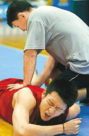 可惜樂極生悲,在一次投籃后,孫悅突然捂著大腿倒下,齜牙咧嘴看起來很痛苦,診斷結果是因為用力過猛,導致臀部抽筋。其實,與其說用力過猛,還不如說“秀”過了頭。