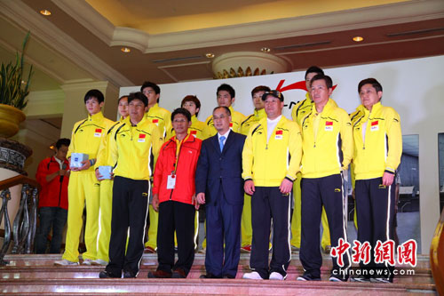 中新網5月9日電(記者 宗晨亮)2010年湯尤杯即將在5月9日-16日開打,國家羽毛球隊已抵達馬來西亞首都吉隆坡。大賽在即,近日國家羽毛球隊參加了“李寧-中國國家羽毛球隊誓師大會”,李寧到場與羽毛球隊總教練共同揭開了這次出征的新裝備,林丹、鮑春來等國家羽毛球隊主力隊員也身穿全新的比賽服裝集齊亮相,總教練李永波則代表國家羽毛球隊信心十足地表示“我們一定要在這次的湯尤杯上繼續取得佳績,力爭衛冕。”