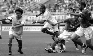 綠城昨天的確打了陜西一個(gè)措手不及,下半場出場時(shí),陜西前鋒李毅“大帝”(9號)居然穿了條8號(李彥)的褲子。再來看看李彥,他穿的是李毅的9號球衣。發(fā)現(xiàn)這一紕漏后,主裁判馬上中止比賽,讓兩人進(jìn)行“現(xiàn)場換衣秀”。換件衣服還沒什么,可憐的李毅還得跑到角落去換球褲,這一場景讓場上的球員都樂壞了。