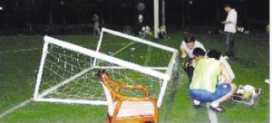 3日下午,位于武漢市漢口江灘三期的足球場上發生一起慘劇:一群足球迷正在踢球時,活動球門倒下砸在守門員頭上。該守門員被迅速送往醫院,但因傷勢過重搶救無效,不幸死亡。而據記者調查,同類球門砸死砸傷人的事件在全國也并非少數,而多數悲劇的發生是因為球門質量不過關造成的。
