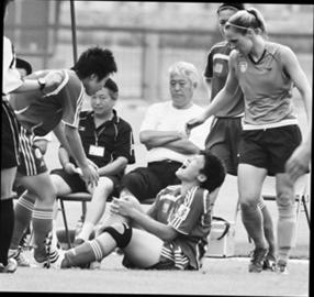 馬曉旭是4月1日受傷的,當(dāng)時女足正在踢熱身賽,與第二次受傷一樣,在沒有任何征兆甚至沒有任何拼搶的情況下,馬曉旭突然倒地。看著她抱著右膝痛苦的樣子,全隊(duì)人心都提到了嗓子眼。檢查結(jié)果證明了最壞的猜測,那條脆弱的十字韌帶再次斷裂。在昆明度過了漫長的4天之后,5日下午,馬曉旭與幾位大連隊(duì)友返回大連。當(dāng)她坐著機(jī)場的輪椅被推出來時,早已守候在機(jī)場大廳的曉旭媽媽急急迎上去,把一副拐杖遞給女兒,扶女兒站起來走出機(jī)場,此時曉旭母親已淚流滿面。