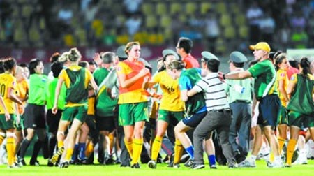 8月3日晚,中國青年女足在武漢2∶1險勝澳大利亞隊,亞青賽兩連勝提前小組出線,但在比賽結束后,雙方發生沖突,一名澳大利亞球員將中國球員張越打倒,雙方替補球員和教練見狀全部沖到場內,一片混亂之后,經過亞足聯官員的親自協調,事件才平息。據了解,澳球員之所以“發飆”,是覺得輸得很“窩囊”,覺得“中國隊做了裁判工作”。路透社的報道說“這起事件無疑對中國足球的聲譽又是一次打擊。 ”但事實上,算上上周日中超聯賽重慶隊主教練阿里·哈恩的“瘋狂咆哮”,連續兩次都是外國教練和外國球員在中國綠茵撒野,這里必須要問一句:憑什么?