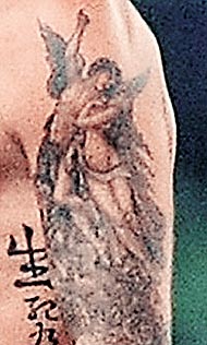 中新網3月10日電 據香港媒體報道,34歲的“萬人迷”貝克漢姆紋身紋上癮,上周六代表AC米蘭出賽時,首次秀出第 18個紋身── 15世紀意大利藝術家弗朗西婭筆下的愛神丘比特與妻賽姬相擁的裸體畫,紋在左臂近肩膀位置,好不威風。