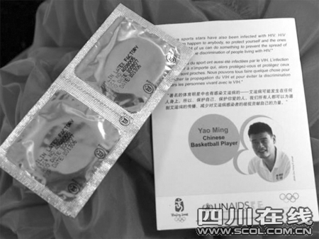 “奧運收藏第一人”趙曉凱在南京展示了這款特殊的奧運村避孕套,和普通款不同,這款避孕套不僅有英法文的介紹,還有舞動北京中國印的標(biāo)志,更加獨特的是,外包裝上還有抗艾大使姚明的頭像(圖)。據(jù)悉,北京奧運期間,國際奧委會在奧運村放置了10萬避孕套預(yù)防艾滋病,姚明作為防艾滋病形象大使,他的肖像被印到了少量的“精裝版奧運村避孕套”上,在奧運后,這款避孕套成為奧運藏家熱追的藏品。“奧運收藏第一人”趙曉凱介紹,這是迄今為止他找到的第一款。趙曉凱表示,姚明版避孕套的拍賣所得,將用于救助只有14個月大的南京白血病患兒。(徐楊)
