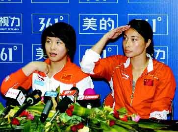 前兩天還異常平靜的陜西省跳水中心從前天開始就“戒備森嚴”,為了給郭晶晶營造一個寬松的訓練環境,十幾名武警嚴陣以待將記者與跳水中心“隔離”。而到了昨天正式比賽開始,現場的氣氛更為“緊張”,郭晶晶所到之處都有若干武警保駕護航,要想接近郭晶晶,那是萬萬不能的。看到如此情景,當時記者就跟相熟的幾位外地的媒體琢磨,一會的新聞發布會一定有“好戲”上演。