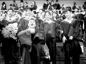 “最近幾年,我碩士班畢業推遲,留學放棄,生孩子計劃推遲,都是為了2008年奧運會,可惜也沒參加上。”回憶起近幾年的奮斗史,老張感慨頗多,“不過今天參加畢業典禮還是很幸福,也很滿足。”