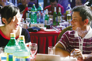李琳和李大雙的桌牌并列放在一張圓桌上——主辦方還真是細心。大概是因為很多媒體不能進入的緣故,飯桌上的李琳和李大雙邊吃邊聊之余更常常咬耳朵竊竊私語,每次李琳在李大雙耳邊說完話都會深情款款地凝望自己的情人,顯得非常恩愛。