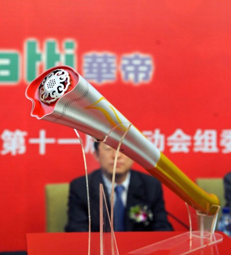 4月28日上午11時(shí),第十一屆全國(guó)運(yùn)動(dòng)會(huì)火炬——“如意”在濟(jì)南揭開神秘面紗,首次在公眾面前亮相。