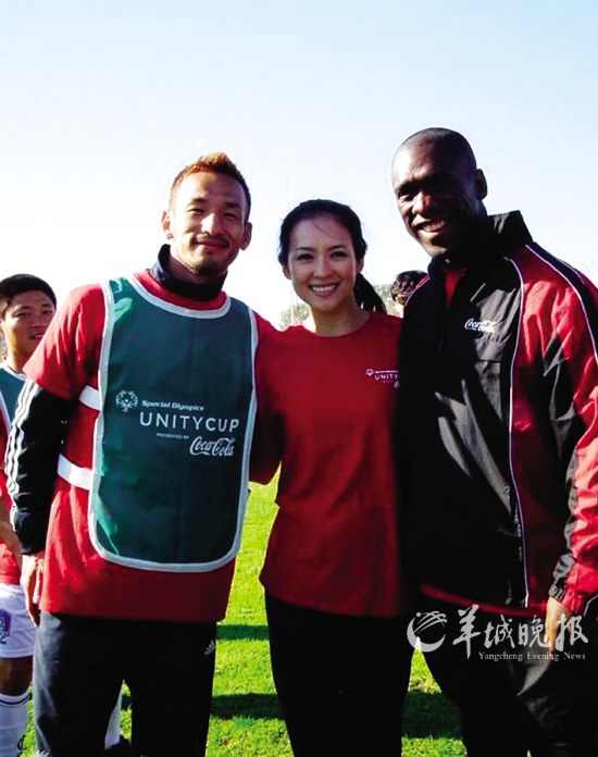 據悉,章子怡于2006年起擔任特奧會全球形象大使,至今已有4個年頭。這一次,特奧會舉辦的“團結杯”比賽旨在讓全社會接納和包容智障人士。章子怡說:“這次在世界杯期間受邀來到南非,主要是希望通過足球這項大家都熱愛的運動,讓更多人了解智障這個群體。”另外,和特奧運動員一起參加比賽練習的還有“亞洲足球先生”中田英壽、NBA球星迪坎貝·穆托姆博、AC米蘭隊員克拉倫斯·西多夫等。在練習過程中,章子怡還跟中田英壽學習背后傳接球的動作,沒想到還一次成功,贏得了現場很多人的掌聲。