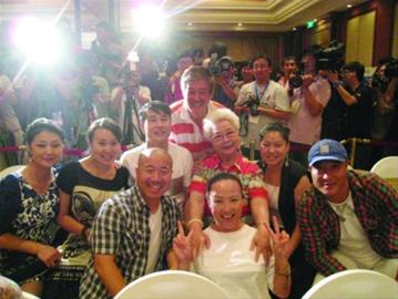 啟動儀式結束時,田華突然跑到了小沈陽的身后,請本報記者為她和小沈陽夫妻、王小利夫妻和于月仙等人一起合個影,這時趙本山也來了情緒,跑過來要記者再給“本山快樂營”和田華媽媽合張影。
