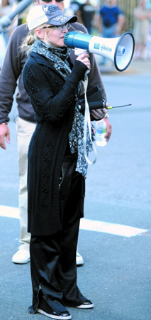 據美國媒體消息,流行教母麥當娜執導的新片《溫莎公爵夫人》(簡稱W.E.)日前在紐約低調開機。素顏現身片場的麥當娜手持擴音器,在拍攝現場指派調遣,巨星導演范兒十足。據悉,《溫莎公爵夫人》是麥當娜繼2008年《下流與智慧》之后執導的第二部影片。