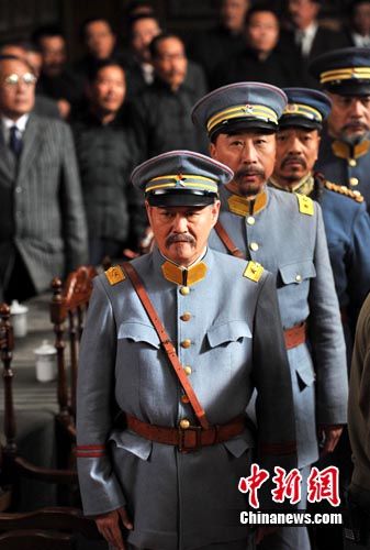 中新網北京10月5日電 (記者 應妮)中影集團年度大作《建黨偉業》轉戰天津,拍攝袁世凱宣誓就職大總統的戲份。周潤發飾演的袁世凱和趙本山飾演的段祺瑞人物造型也首度曝光,而小沈陽在電影中扮演的角色依舊是一個謎。