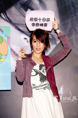 獨挑大梁唱完3場后,田馥甄高喊:“好爽,最想喝酒!”為了慰勞她,唱片公司讓她抽機票,結(jié)果她竟抽中當(dāng)中的“最大獎”巴黎商務(wù)艙來回機票。田馥甄興奮地說自己終于有了運氣:“我以前買‘刮刮樂’都沒中過。”被問到會不會想在明年入圍金曲獎最佳國語女歌手獎項時,田馥甄說:“這應(yīng)該不是‘妄想’,我有信心。”