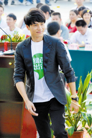 10月17日下午,大眾電影百花獎“新科影帝”陳坤來到廣州,在白云會議中心參加“綠色出行”公益活動啟動儀式。