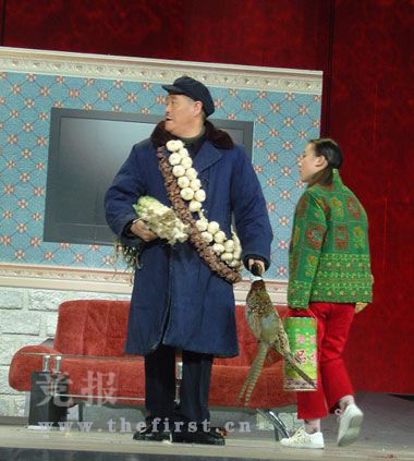 昨日下午,彩排進行到3個多小時,觀眾都看疲憊了,穿著藍色大棉襖的趙本山扛著一辮大蒜,夾著一捆子大蔥就上臺了。他一露面兒,觀眾的興奮勁兒就來了,掌聲響了起來。按本山往常的臺風,他這時都會沖著觀眾席四周掃視一圈,給大家幾個“憨笑”,但昨天卻突發意外,本山的咳嗽聲不絕于耳,隨即,觀眾的掌聲戛然而止。趙本山繼續說臺詞,起先還有觀眾誤以為咳嗽也是趙本山設計的包袱,但是大家馬上看出來趙本山是真生病了。