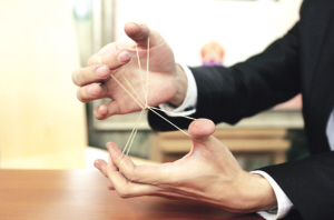 春晚上,董卿和劉謙配合表演了雞蛋變戒指和硬幣掉玻璃杯的魔術,大家都質疑董卿是托。昨日鄧尹也表演了類似魔術。鄧尹先找記者要了一枚戒指,他拿一條繩子將戒指穿在里面,朝戒指吹氣,戒指瞬間變成鑰匙,鄧尹遞給記者一個盒子,戒指正躺在里面。隨后鄧尹又找記者索要了一枚硬幣,記者在上面做了記號,他同樣吹口氣后,硬幣不見了。這時鄧尹拿著一個用橡皮筋綁著的套盒遞給記者,盒子總共三層,綁得死死,最后一層是個小布袋,記者打開看,正是做了記號那枚,因此這兩單魔術不需要“托”就能完成,鄧尹也在現場表示,董卿的確不是劉謙的托兒。