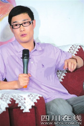 當(dāng)書卷氣十足的“小沈陽”上臺(tái)向觀眾鞠躬時(shí),現(xiàn)場(chǎng)立即爆發(fā)出熱烈掌聲。女主持首先教“小沈陽”學(xué)說幾句成都話“好巴適哦!“巴適得板!”“巴適得慘”!“巴適得憨!”僅教了兩次,“小沈陽”就一口氣用正宗四川話說出來,逗得現(xiàn)場(chǎng)觀眾和記者哄堂大笑。緊接著,女主持又讓“小沈陽”跟她現(xiàn)場(chǎng)學(xué)唱四川民歌《康定情歌》。“小沈陽”竟以“二人轉(zhuǎn)”的形式翻唱,現(xiàn)場(chǎng)又是一陣笑聲。
