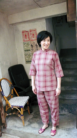 吳君如則比較顯眼,她穿著一身紅格子老式服裝,頭發是特意粘的假發,很茂盛地搭在額前。她的腳上跟任達華一樣蹬著塑料拖鞋,身材看上去略有些發福。吳君如的妝化得挺濃艷,看上去跟環境有點不搭調。任達華卻十分自在,到處跟人聊天,演他們兒子的小演員———在《大搜查》里演陳奕迅兒子的鐘紹圖遠遠跑過去,很響亮地喊他“老竇”,他也很從容地回了一聲“哎”。