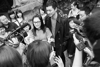 此時已中午12點過,劉璇還沒吃午飯。原以為她會走馬觀花隨便轉一圈,豈料每到一處,都仔細聽導游講解。在蘇宅的一處古井旁,專門擺了兩盆井水。她聽導游介紹用這里的水洗手,可以變聰明,立刻童心大發,把手伸到了盆里。一旁的王弢主動曝女友的光,“她最喜歡蘇軾的詞了,老早就說要來游覽三蘇祠,現在終于得償所愿!”被男友“出賣”的后果,就是劉璇被圍觀者要求背一首蘇軾的詞,她大大方方地說,“其實我更喜歡用唱的!”跟著就來了一首王菲曾經改編過的歌曲,“明月幾時有,把酒問青天……”雖然唱功比較業余,但奧運冠軍的親和,仍博得一陣掌聲。