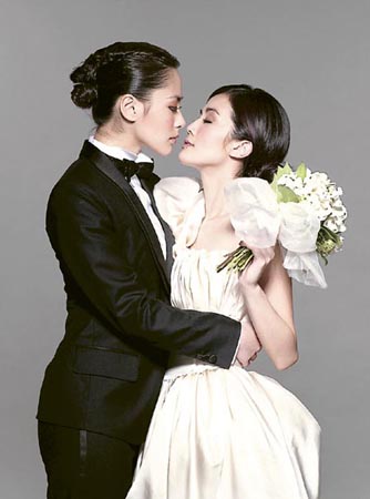 | 中新網2月2日電 香港明報消息,Twins推出紀念精選集《我們相愛六年》,兩人時男時女穿著婚紗與禮服拍攝了一輯結婚照片;兩人近距離嘴對嘴,十分親熱。有關照片曝光贏得稱贊有美感外,但網民亦就照片的大膽意識作討論;有指她們在宣揚同性愛為題,短時間已有逾千五次的瀏覽,亦有不少網民響應。有指她們是不少小朋友的偶像,這種親熱照片曝光會否帶來壞影響,意識不良,有較偏激的更提議向廣管局投訴。不過,亦有網民為Twins抱不平,贊照片有美感,認為有人濫用投訴。記者就事件向廣管局查詢,現今未接獲任何投訴。