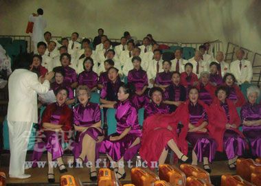 記者采訪時獲悉,前日凌晨1時,老人們才從央視排練結束,回到駐地,昨晨6點就起床集合。上午10時,合唱團全體成員再次走進央視,做彩排前的化妝造型準備。幾乎零睡眠的休息狀態,著實讓人擔心,但領隊說,老人們想到真的要上春晚,前夜興奮得都沒睡好覺。當記者夸贊老人們白色西裝和紫色旗袍的演出服漂亮時,領隊頗有些得意地說:“我們之前準備了9套半服裝,光是女團員的旗袍顏色就有好幾種選擇,還為男團員分別準備了領花和領帶,以備春晚導演選擇。”原來合唱團來京前,領隊就把演出服的顏色和相關樣式通過網絡發給了導演組,得到首肯后,只用了短短兩天,就趕制出來。正式上臺前的數個小時里,老人們一絲不茍地在演播廳外練唱,甚至連上臺時的臺步都反復排練。