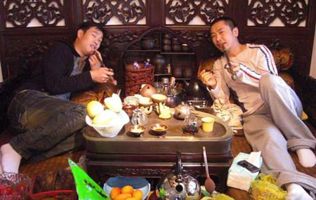 前段時間,有媒體曝光了一組小沈陽與哈爾濱好兄弟姜鵬的親密合影照,兩人臉貼臉、肢體似曖昧。姜鵬解釋稱,這是小沈陽去年生日的合影。近日,又一組有關姜鵬和小沈陽的合影被曝光,二人在一間仿古的老房子土炕上,圍著圓桌半躺著,手里拿著大煙袋,擺出休閑自在之態。
