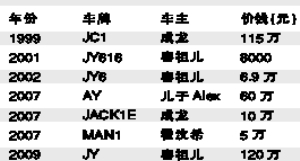 向來喜歡競投自訂車牌的楊受成,多年來經常一擲千金為朋友、家人和旗下歌手送禮。稍顯奇怪的是,剛剛在北京完成活動全力復出的阿嬌不在名單(如表)。