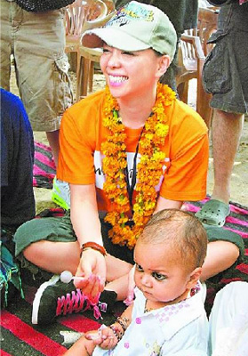 中新網5月20日電 臺灣歌壇天后張惠妹(阿妹)上周赴印度探訪,4天行程中她放下身段,每天早睡早起揮汗體驗農村生活。